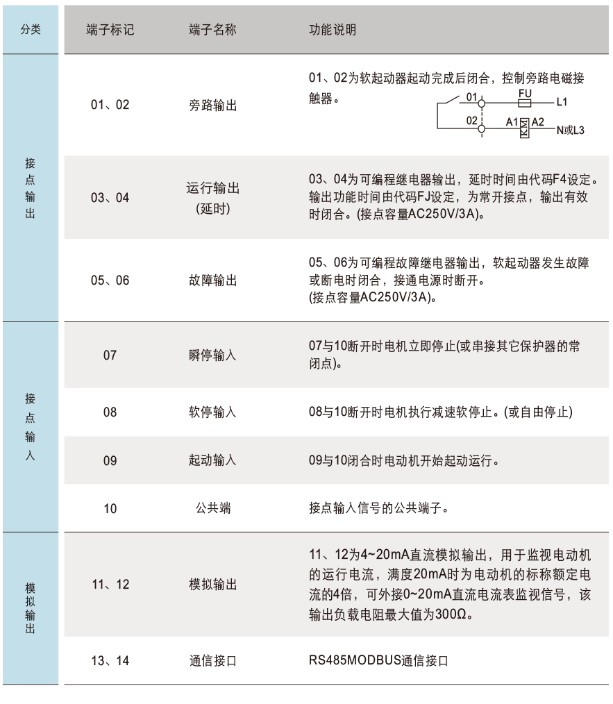 控制电路端子的功能见下表。按照不同的功能设定,控制端子的功能和连接亦不同。